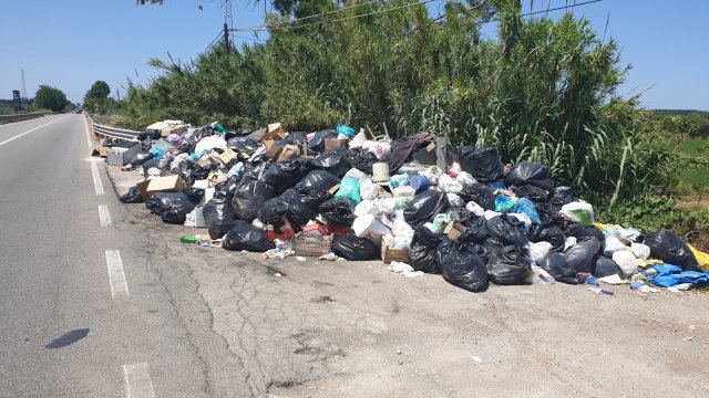 Man mano che ci si allontana dal Parco dell’Etna ricominciano nuovamente gli accumuli di immondizia sul bordo strada. Arrivato ad Adrano è discarica pura lungo tutta la statale. Qui incontro il primo cane randagio che però mi lascia andare senza nemmeno degnarmi di uno sguardo. Io comunque mi ero munito di bastone che portavo con me già dall’inizio della discesa.