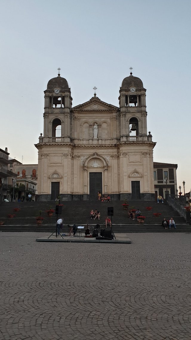Arrivati nei pressi di Cesarò, decisamente affamato, il mio GPS decide di mettermi alla prova facendomi raggiungere il centro del paese attraverso una ripidissima salita con blocchi di pietra sconnessi, perciò una salita doppiamente faticosa. Mi sono dovuto fermare due volte per riprendere fiato. Arrivato in cima, ancora col fiatone, chiedo ad un signore le indicazioni per un ristorante. Lui ride e mi dice che l’unico ristorante aperto è giù sulla strada principale, da dove venivo io! Mi dice però che dovrei trovare un bar e una rosticceria in paese. Arrivo in centro, paese tipo quelli della serie di Montalbano, e la rosticceria è chiusa e al bar, un gruppetto di ragazzi mi dice che lì si mangiano solo dolci o brioche con granita. Ovviamente fanno le solite battutine sul fatto che in macchina farei meno fatica, scambio un paio di battute con loro e poi me ne vado, sperando di trovare qualcosa più avanti.