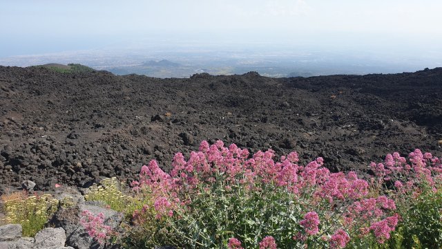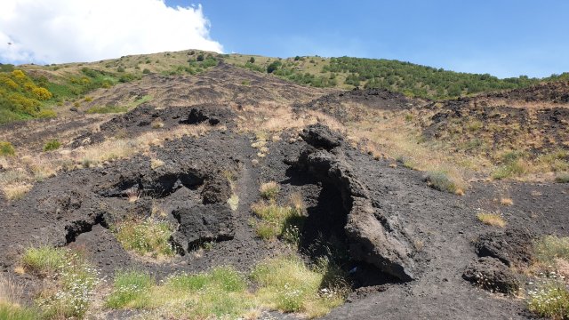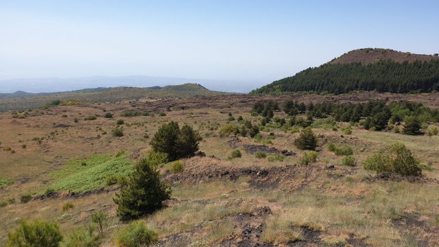 Scendendo a valle si vedono ancora tracce di colate laviche dappertutto. L’Etna, nei secoli ha fatto colate da ogni versante, infatti si intravedono parecchi crateri anche a bassa quota.