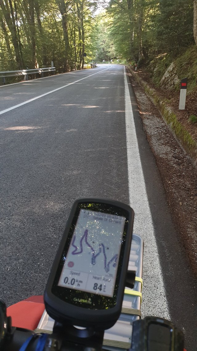 Conferma che poi ho avuto da un ciclista che ho fermato poco dopo al quale ho chiesto conferma se questa strada sarebbe arrivata a valle. La mia preoccupazione era di trovarmi in mezzo al nulla su qualche mulattiera sperduta nelle campagne. Invece è stata una goduria perché, a parte pochi metri di salita, mi sono fatto 1400 m di dislivello in discesa.