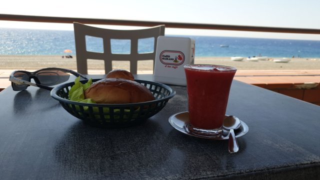A Cesarò non ho avuto fortuna e sono andato avanti, a 2 km c’era un altro paesino, San Teodoro, ma anche lì la scelta era scarsa. In realtà mancavano solo più 15 km alla mia meta, ma erano 15 km di salita e non mi andava di usare le mie baratte di emergenza, visto che ero in un paese e qualcosa da mangiare la dovevo trovare…brioche con granita! Ne ho mangiate tre!