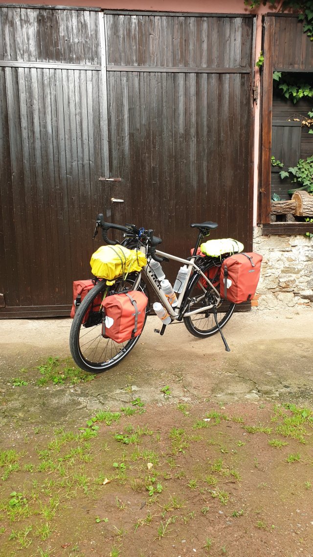 Ho forse ancora un po’ troppe cose pesanti nei borsoni anteriori perché al termine del giro sentivo quasi più le braccia che le gambe. Vabbè, domani avrò ancora tempo per ottimizzare la distribuzione dei pesi. Ormai quello che mi porto è stato definito, devo solo fare un po’ di prove spostando le cose da una parte all’altra, cosa che forse farò svariate volte durante il tour, credo 🤔