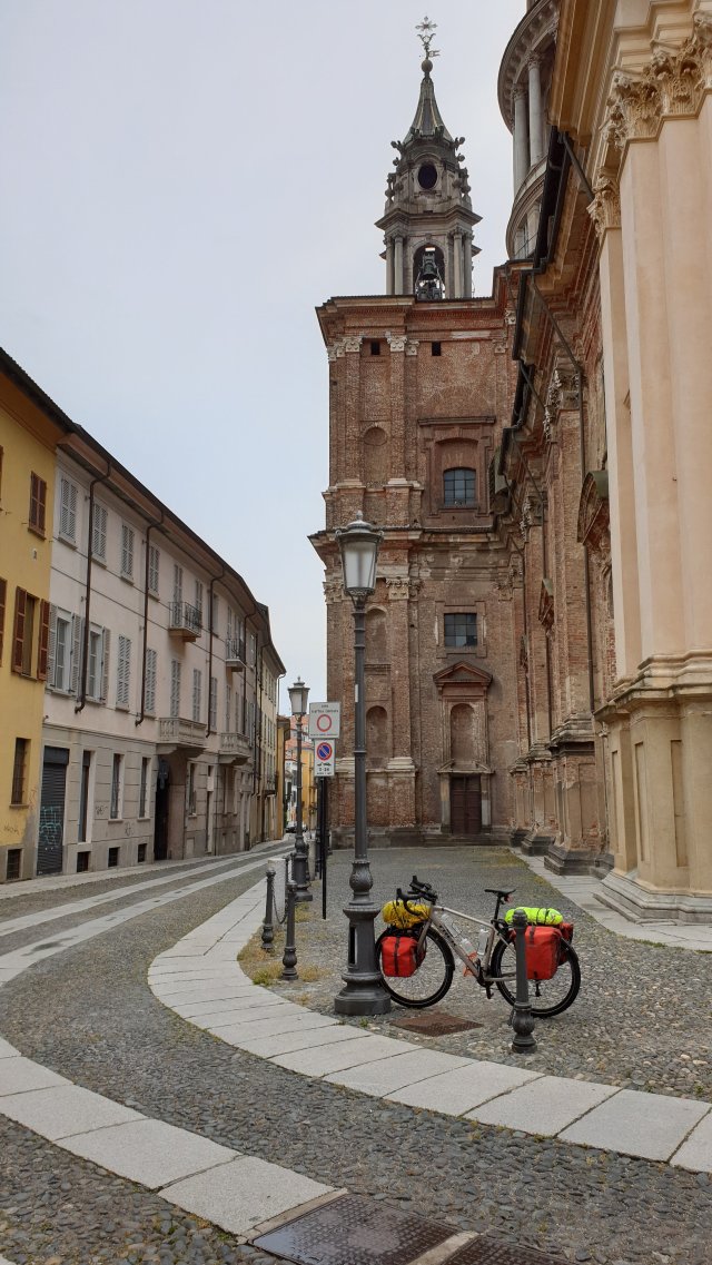 Domani ho una tappa lunga fino a Tortona, ma piattissima, 105 km e solo 160 m di dislivello! Il meteo sembra ancora clemente, con temperature che non dovrebbero superare i 25 gradi e con un cielo ancora un po’ coperto. Bene, perché la Pianura Padana un po’ mi preoccupa per le sue temperature alte.