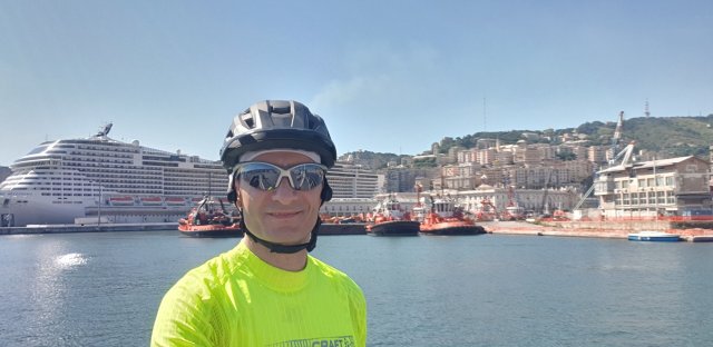 Poi è cominciata la discesa verso Genova. Mentre stavo ancora mangiando mi è arrivato un allarme meteo, vento su Genova. In effetti la discesa è stata tutt’altro che facile, perché ho dovuto sempre spingere sui pedali dato il forte vento contro.