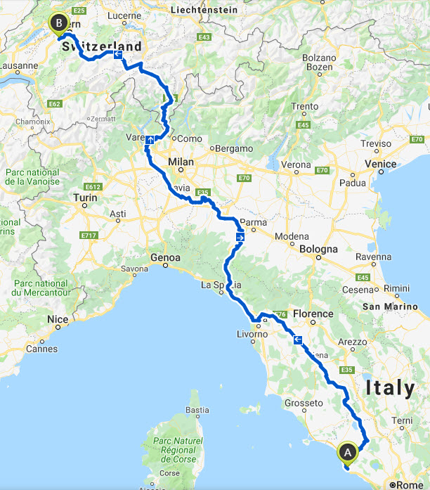 In extremis oggi ho terminato la pianificazione della seconda parte del mio giro, quella che da Civitavecchia mi porterà a casa a Wünnewil in poco più di 1100 km 😁